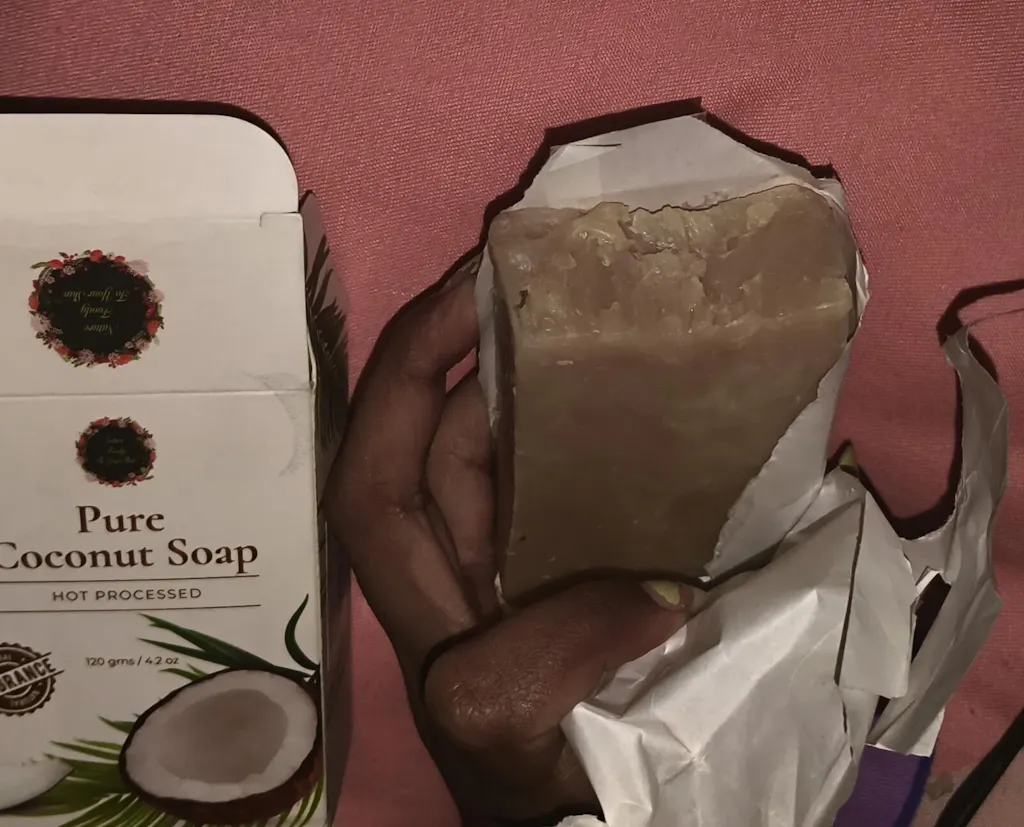 This Coconut soap gently cleanses while providing deep hydration, thanks to its natural oils. It helps remove dirt and impurities without stripping the skin of its natural moisture. Rich in antioxidants, it protects your skin while leaving it soft and smooth. Ideal for sensitive skin, it soothes irritation and replenishes moisture, ensuring your skin stays hydrated throughout the day. Its refreshing scent and nourishing properties make it a perfect addition to your daily routine.
